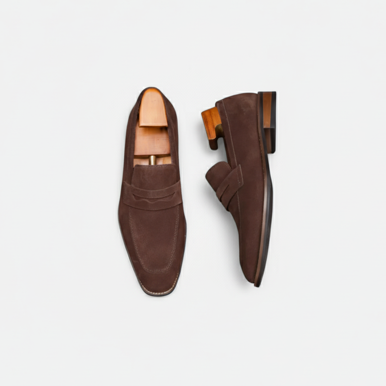 Riveromode | Men’s Suede Penny Loafers – Classic Slip-On Elegance