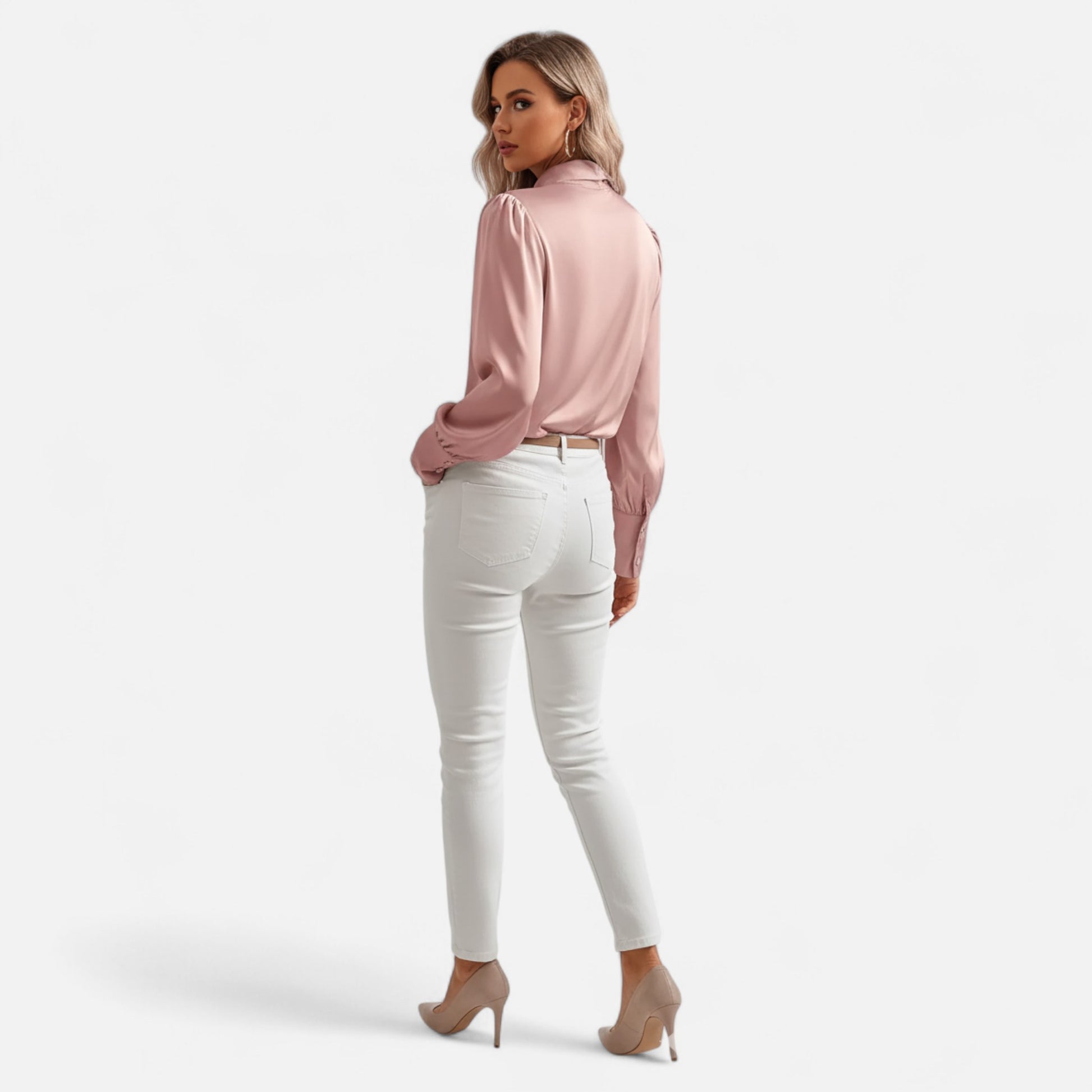 The long sleeves, flowing satin fabric, and delicate bow detailing create a silhouette that is both sophisticated and versatile. Soft to the touch and draping beautifully, this blouse captures a sense of refinement that never fades. A staple for the woman who values understated elegance, it brings poise to every occasion.
